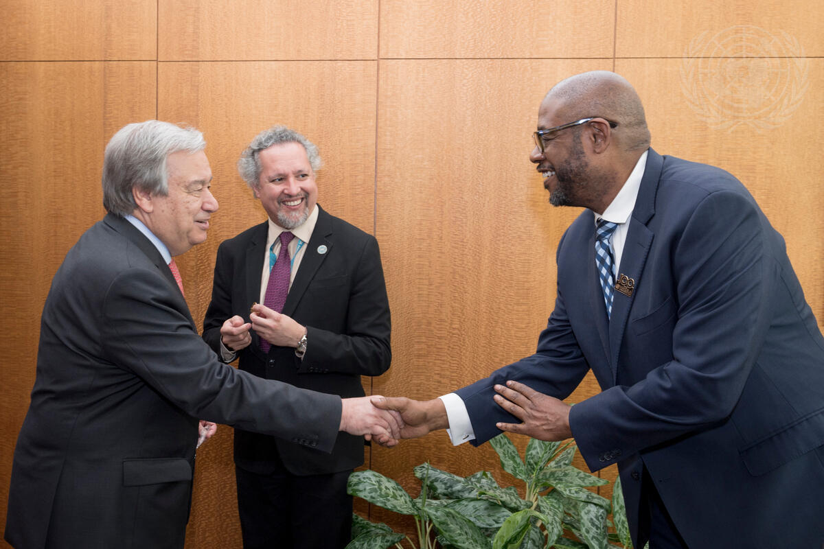 Secretary-General António Guterres (left) greets Forest Whitaker, UNESCO Special Envoy for Peace and Reconciliation and SDG Global Advocate, prior to the annual observance of Nelson Mandela International Day. The 2018 observance marks 100 years since Mandela's birth (18 July 1918).