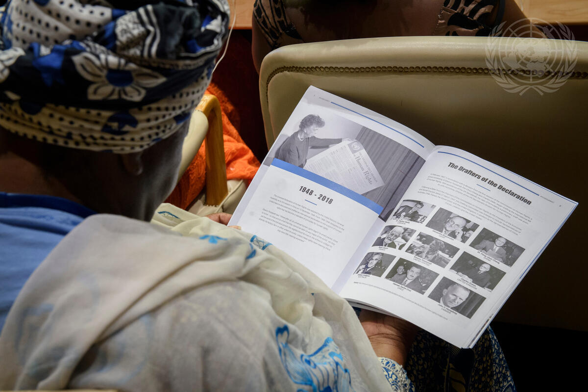 A participant examines pamphlet at the 15th Annual International Human Rights Summit 2018, which focused on Youth for Human Rights.