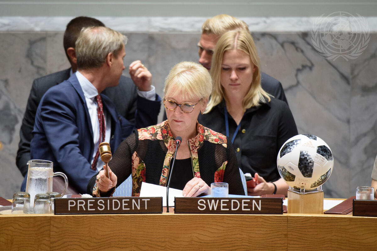 Margot Wallström, Minister for Foreign Affairs of Sweden and President of the Security Council for the month of July, chairs the Security Council meeting on peace and security in Africa.