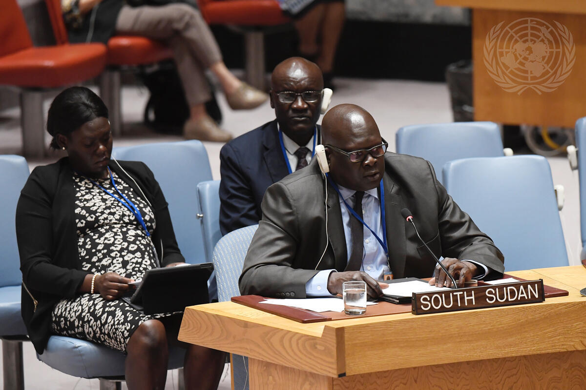 Akuei Bona Malwal, Permanent Representative of the Republic of South Sudan to the UN, addresses the Security Council on the situation in the Sudan and South Sudan.