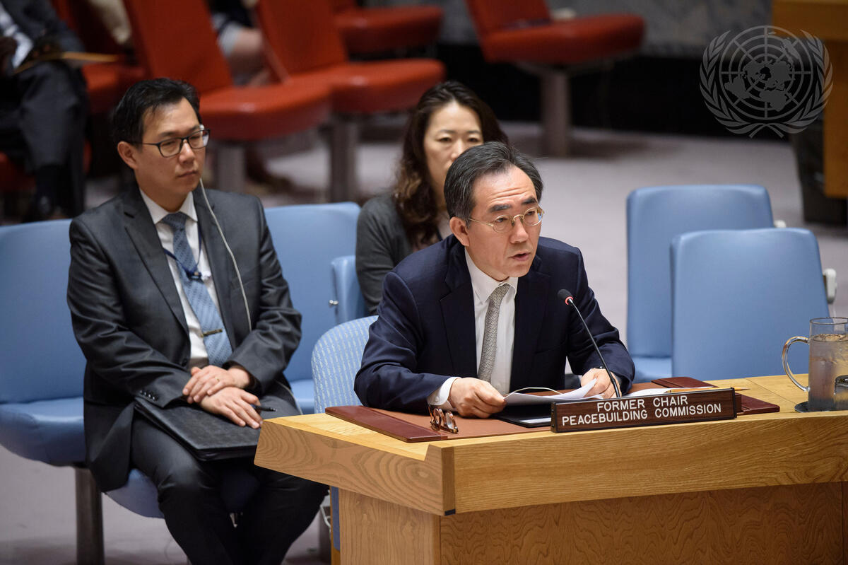 Cho Tae-yul, Permanent Representative of the Republic of Korea to the United Nations and Vice-Chair of the Peacebuilding Commission, addresses the Security Council meeting on peacebuilding and sustaining peace.