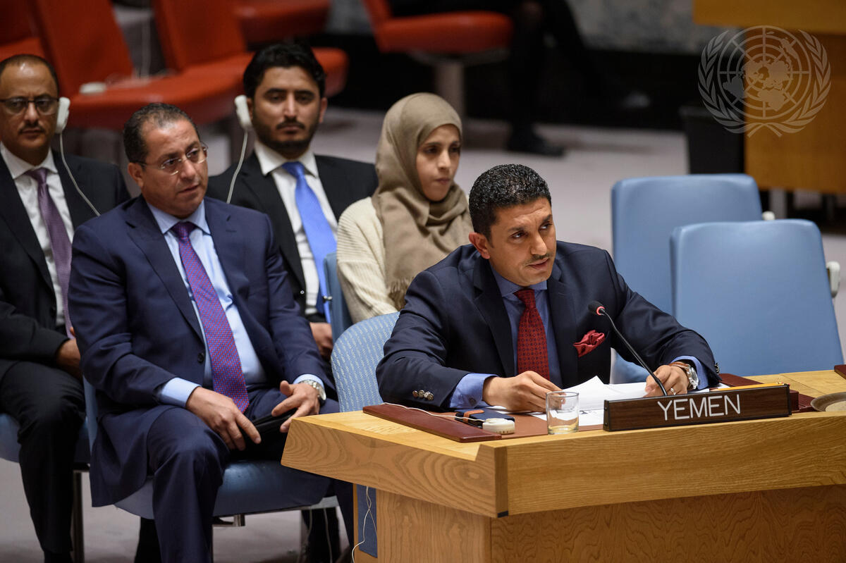 Ahmed Awad Binmubarak, Permanent Representative of Yemen to the UN, addresses the Security Council meeting on the situation in the Middle East (Yemen).