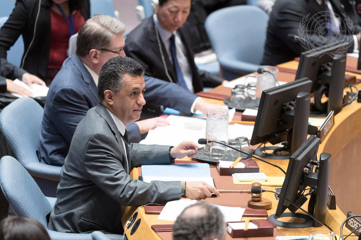 Sacha Sergio Llorentty Solíz, Permanent Representative of Bolivia to the UN and President of the Security Council for the month of October, chairs the Security Council meeting on the situation in the Central African Republic.