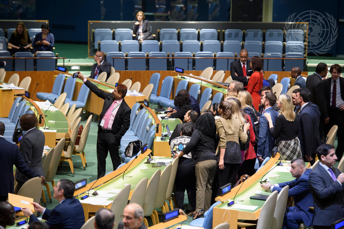 Delegates takes a group selfie inside the General Assembly Hall.