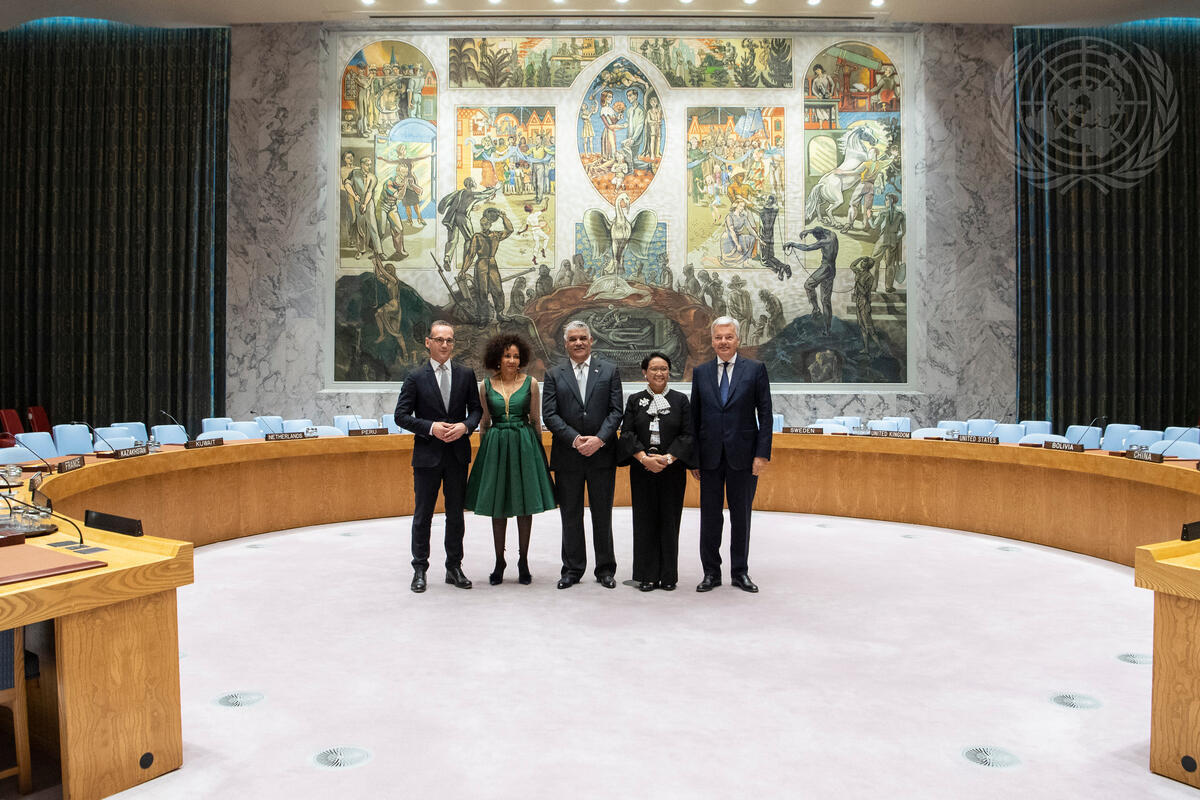 Pictured (left to right): Heiko Mass, Minister for Foreign Affairs of the Federal Republic of Germany; Lindiwe Nonceba Sisulu, Minister for International Relations and Cooperation of the Republic of South Africa; Miguel Vargas Maldonado, Minister for Foreign Affairs the Dominican Republic; Retno Lestari Priansari Marsudi, Minister for Foreign Affairs of the Republic of Indonesia; Didier Reynders, Deputy Prime Minister and Minister for Foreign Affairs of Belgium.