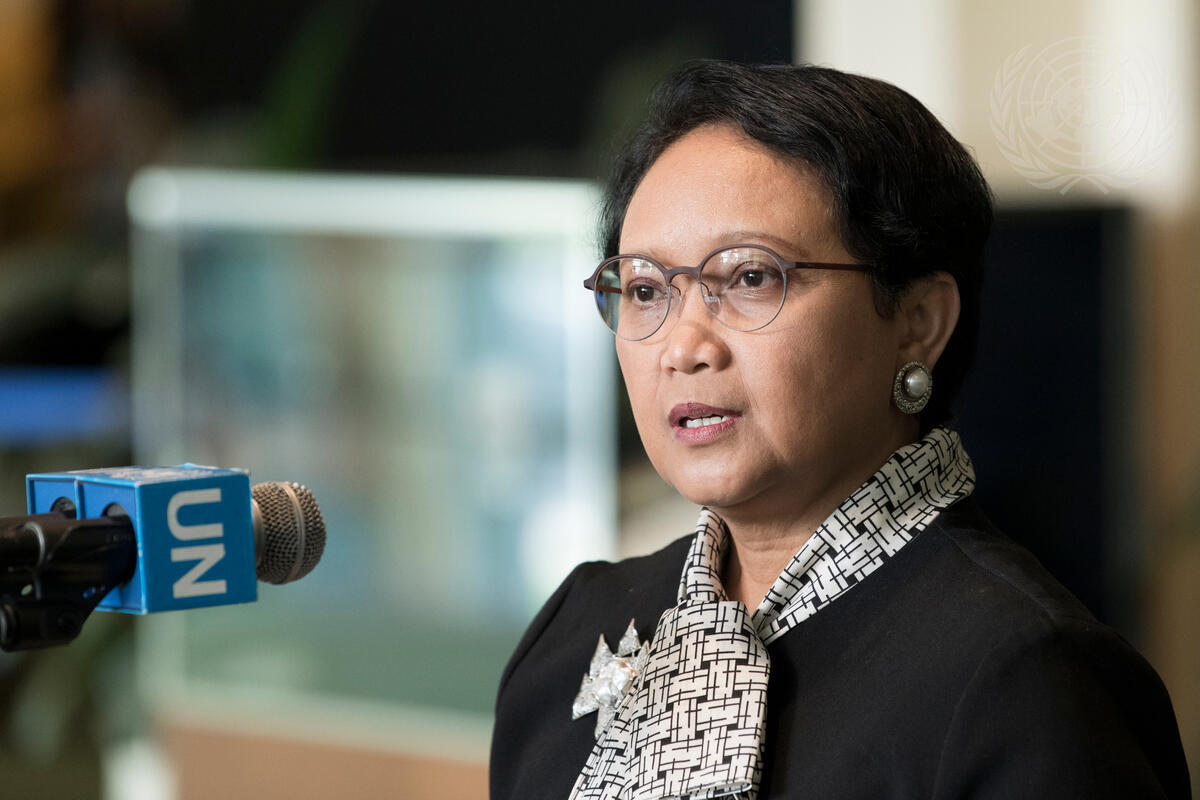 Retno Lestari Priansari Marsudi, Minister for Foreign Affairs of the Republic of Indonesia, addresses press after the election of Indonesia as a new non-permanent member to the Security Council.
