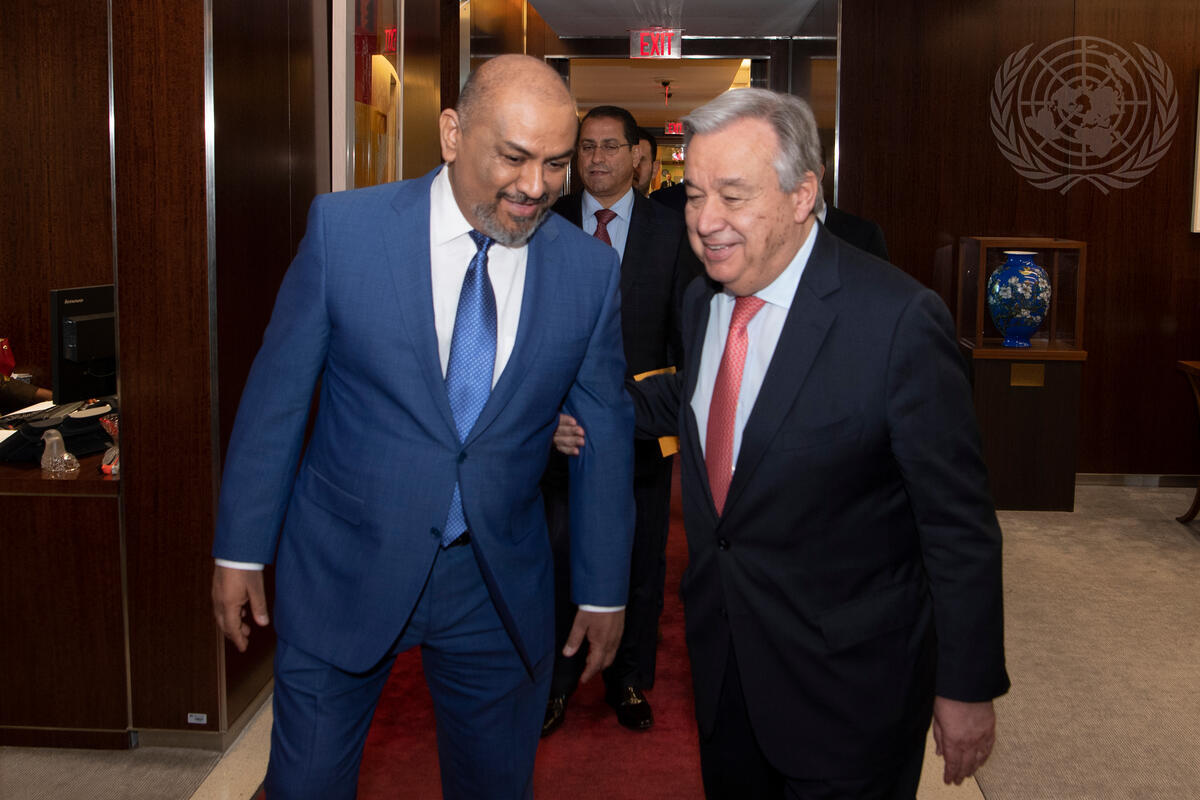 Secretary-General António Guterres (right) meets with Khaled Hussein Alyemany, Deputy Prime Minister and Minister for Foreign Affairs of the Republic of Yemen.