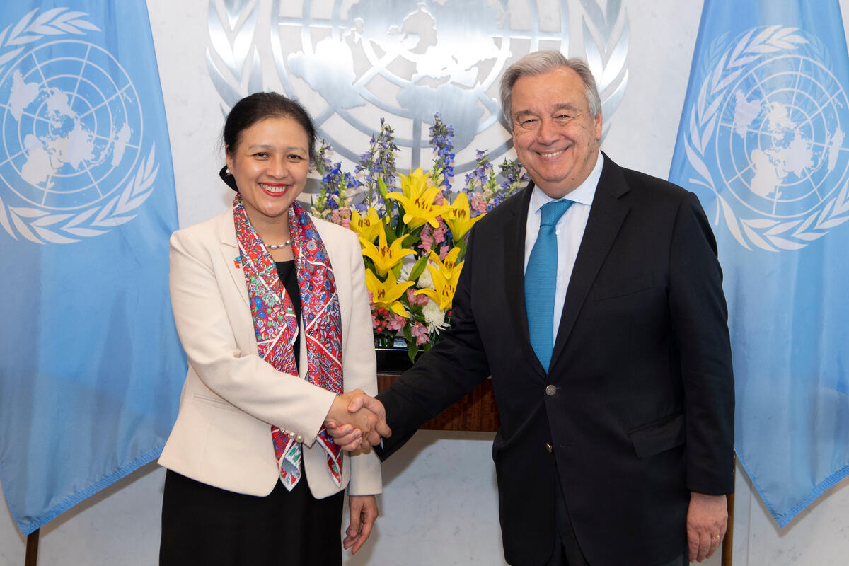Nguyen Phuong Nga (left), Permanent Representative of the Socialist Republic of Vietnam, pays a farewell call on Secretary-General António Guterres.