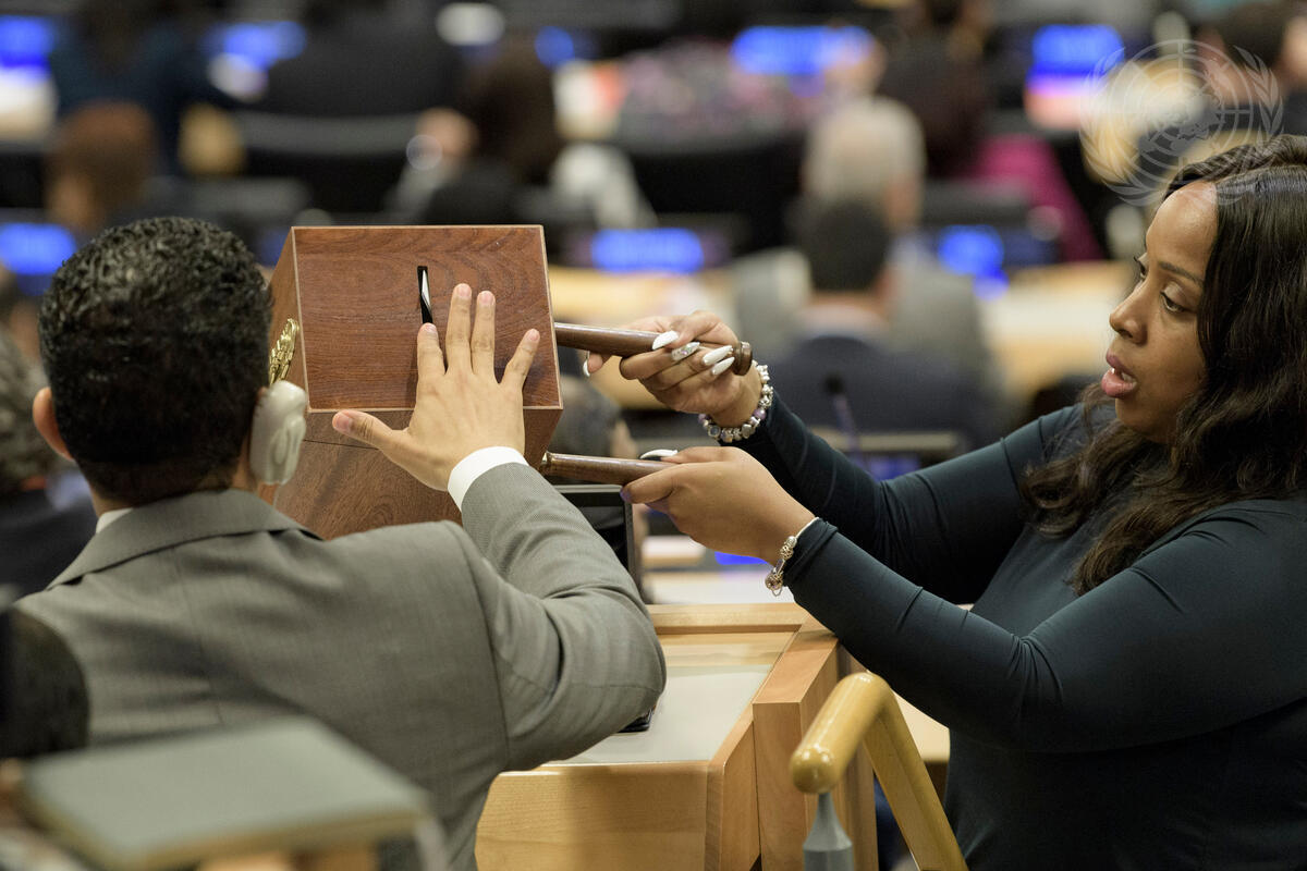 A view of voting during the twentieth meeting of States Parties to the Convention on the Elimination of Discrimination against Women (CEDAW). Twelve members were elected to the Committee on the Elimination of Discrimination against Women, replacing those whose terms are due to expire on 31 December 2018.