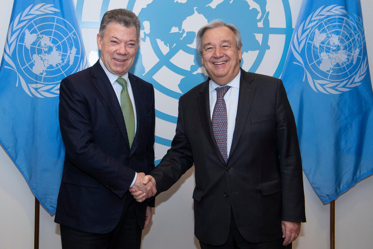Secretary-General António Guterres (right) meets with Juan Manuel Santos, former President of the Republic of Colombia.