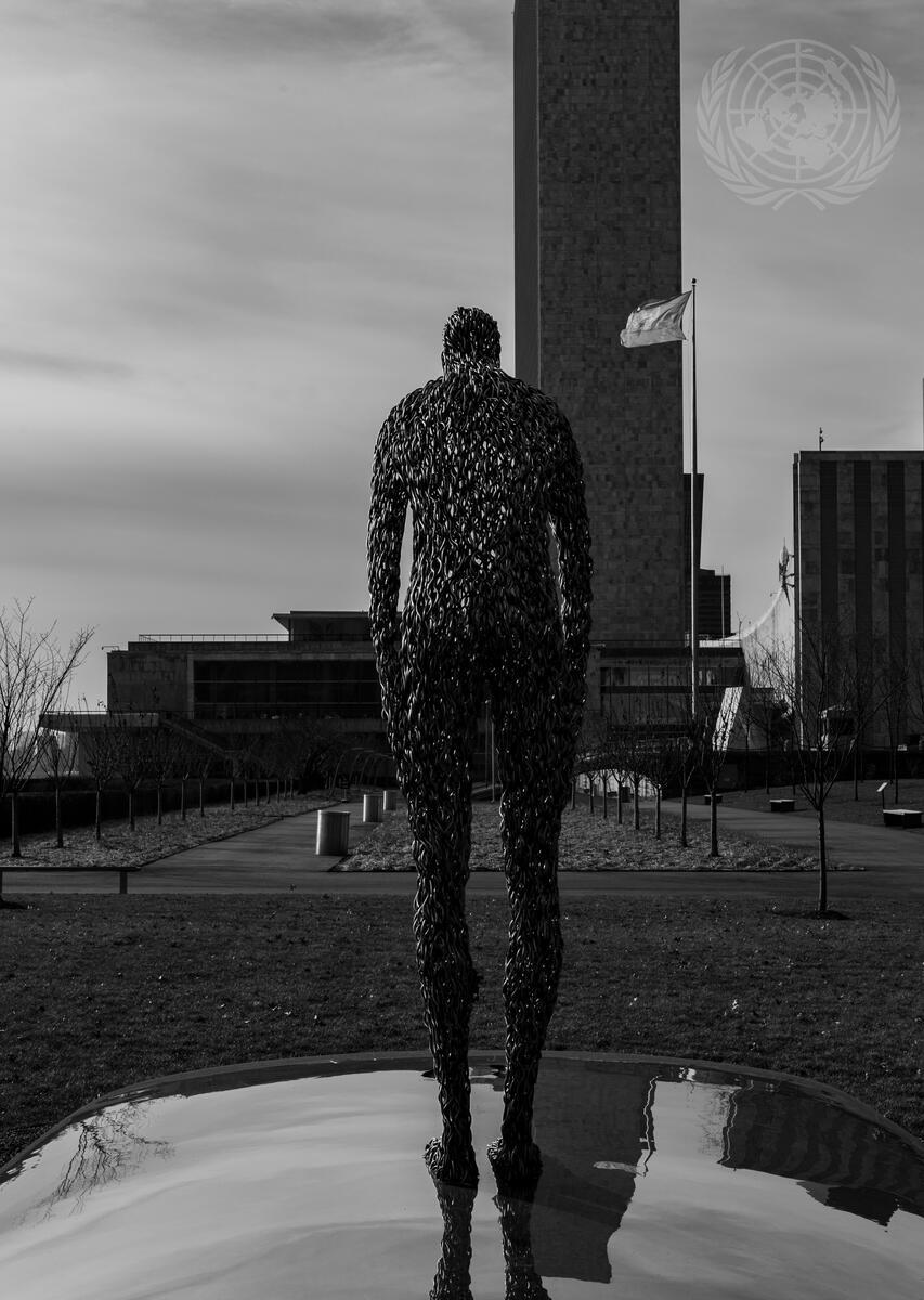 A view of the sculpture entitled “Consciousness”, created by Mongolian artist Ochirbold Ayurzana and gifted to the United Nations by the Government of Mongolia.