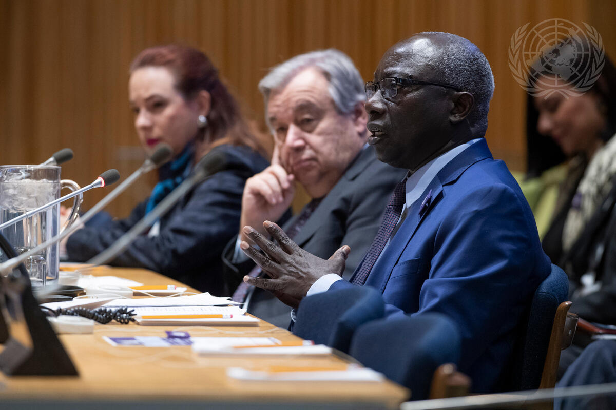 Adama Dieng (right), Special Adviser on the Prevention of Genocide, addresses the event entitled “Seventieth Anniversary of the Convention on the Prevention and Punishment of the Crime of Genocide and the International Day of Commemoration and Dignity of the Victims of the Crime of Genocide and of the Prevention of this Crime”.