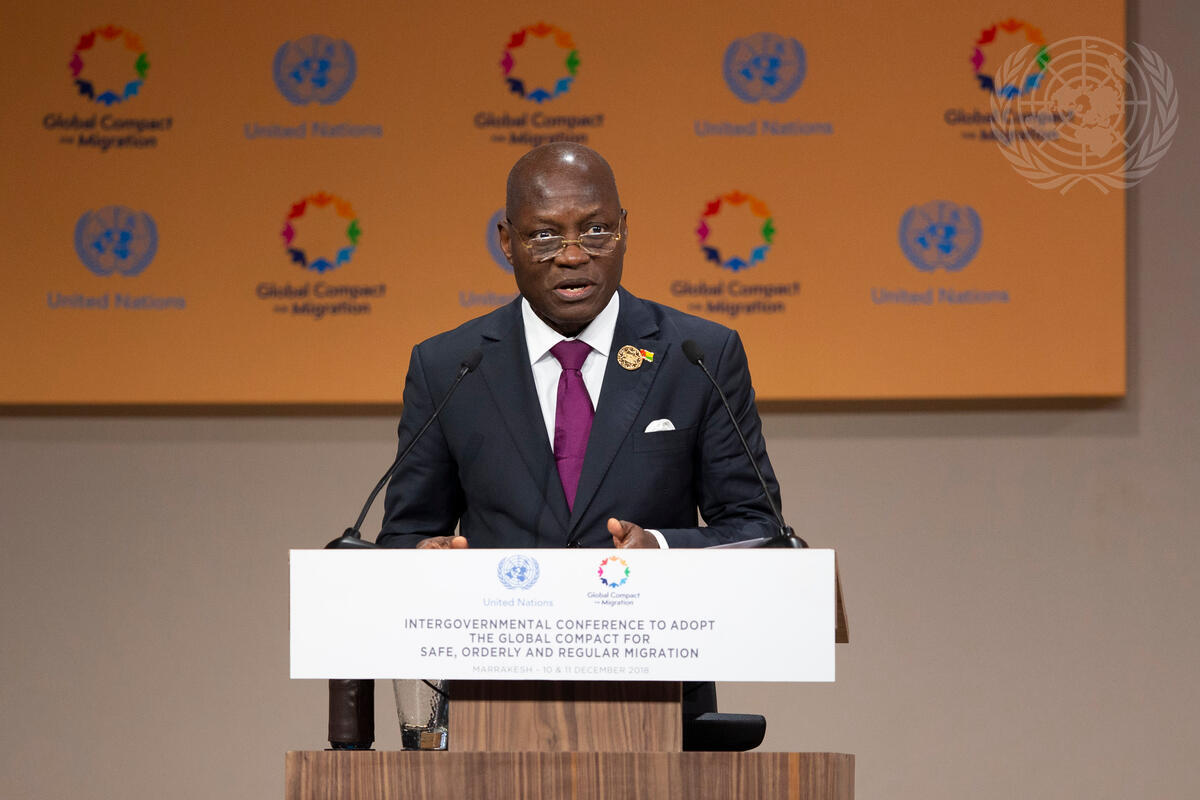 José Mário Vaz, President of the Republic of Guinea-Bissau, addresses the Intergovernmental Conference to Adopt the Global Compact for Safe, Orderly and Regular Migration.