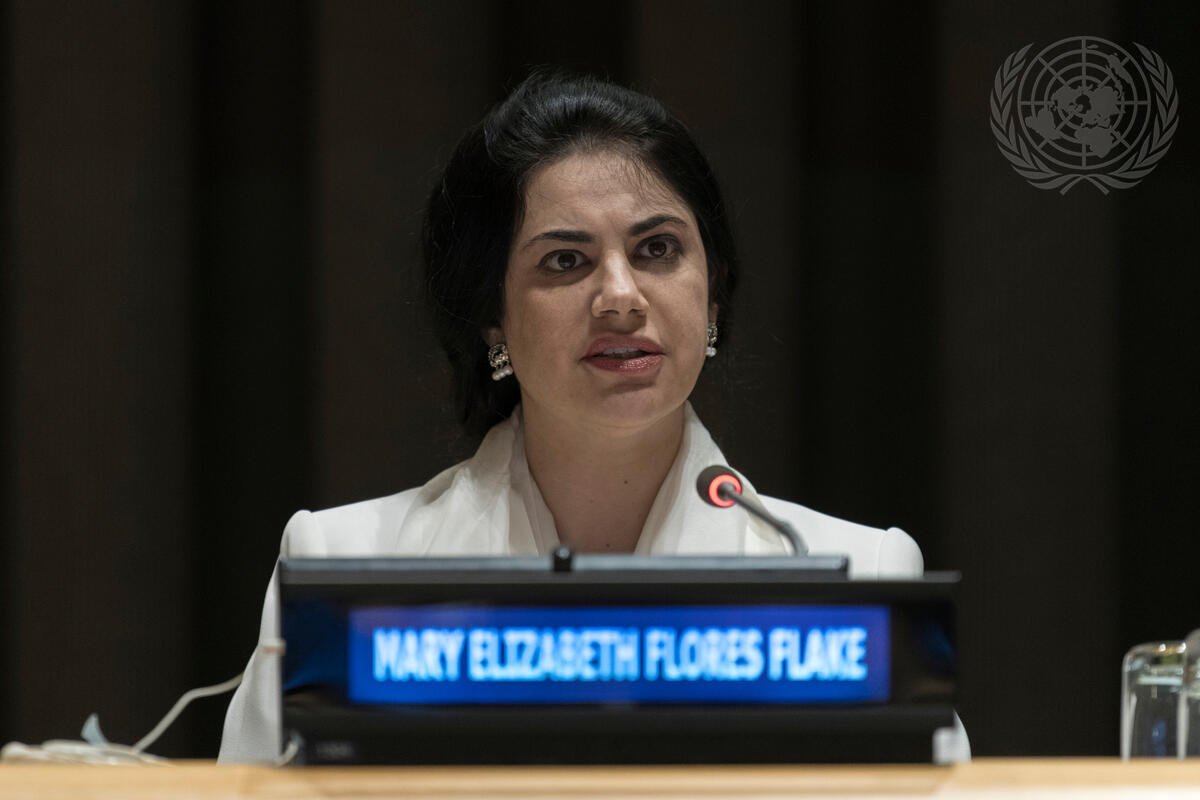 Mary Elizabeth Flores Flake, Permanent Representative of Honduras to the UN, addresses the informal interactive dialogue with candidates for the position of President of the General Assembly for the seventy-third session.