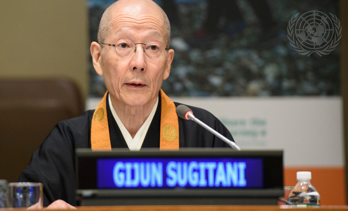 Gijun Sugitani, Chair of Religions for Peace, addresses a special event entitled ""Sharing the Journey of Migrants and Refugees: An Interfaith Perspective on the Global Compacts"".