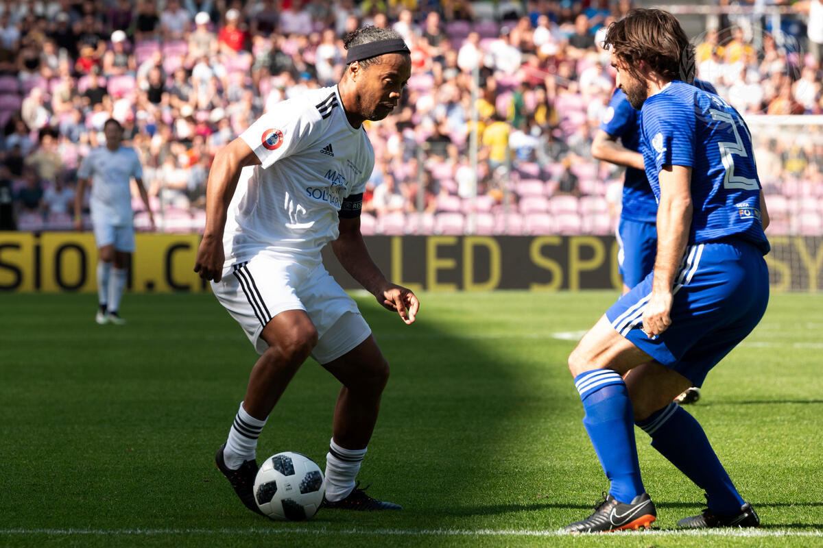 Ronaldinho (left) and Andrea Pirlo (right) during the Match of Solidarity, a joint United Nations-Union of European Football Associations (UEFA) charity event held at Stadium de La Praille in Geneva.