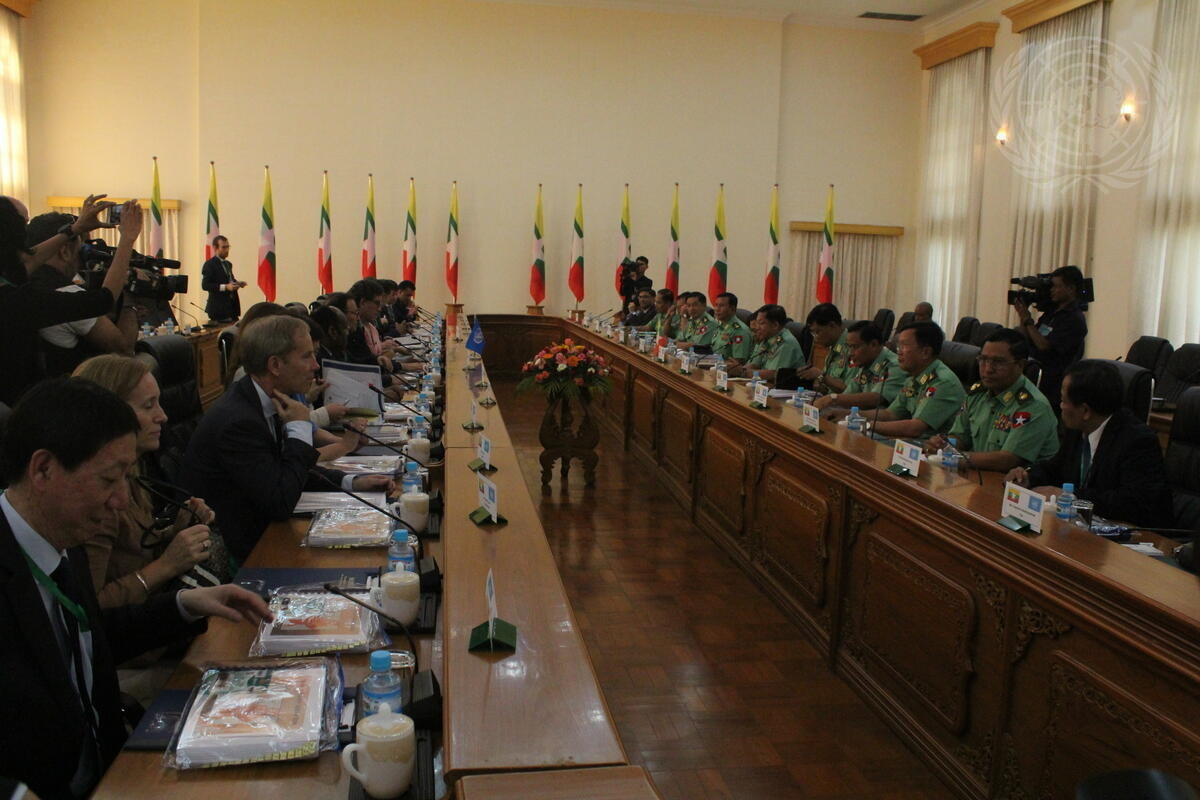 Members of a Security Council delegation visiting Bangladesh meet with Commander-in-Chief Senior General Min Aung Hlaing of the Republic of the Union of Myanmar.
