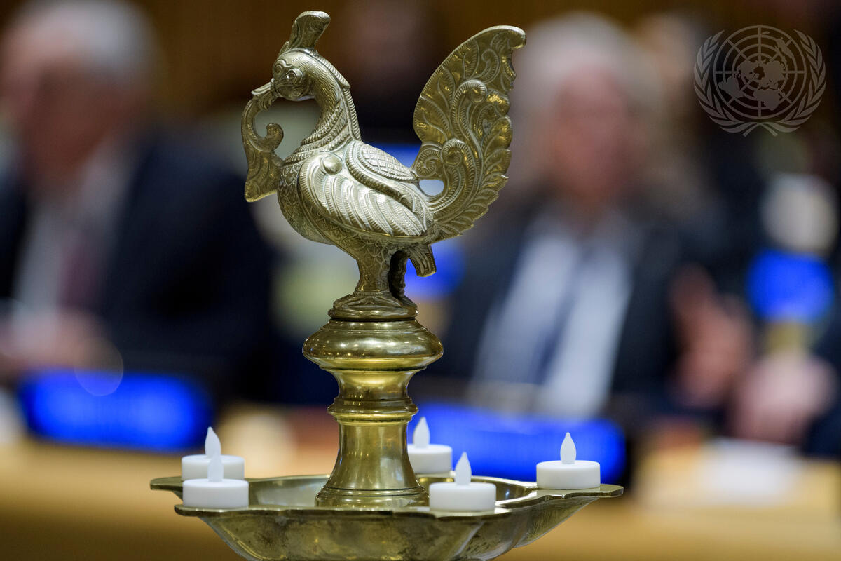 A view of an ornamental lamp at the ceremony presenting ""The Power of One"" awards to commemorate the issuance of the Diwali Stamp by the United States Postal Service.