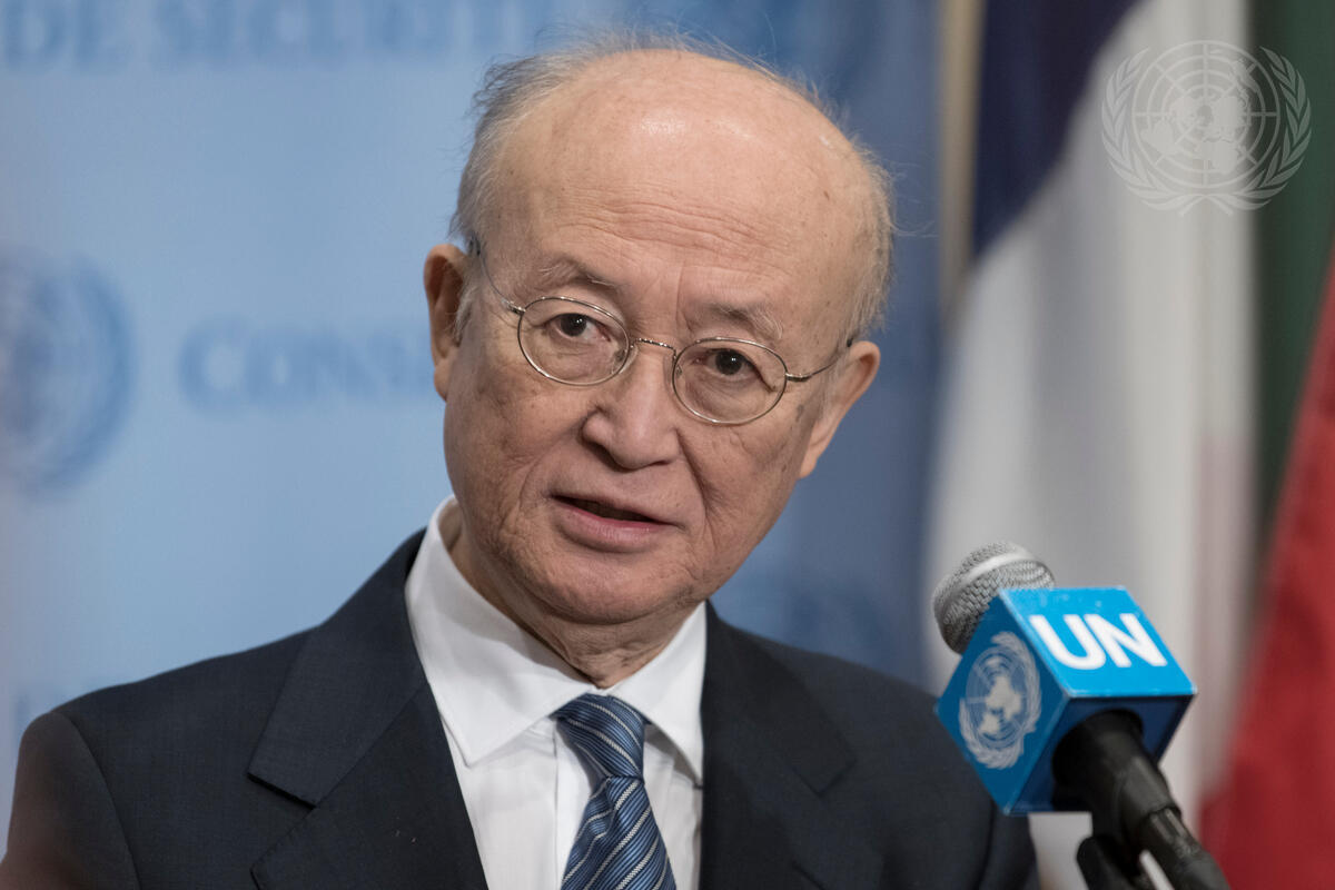 Yukiya Amano, Director General of the International Atomic Energy Agency (IAEA), briefs press after the Security Council meeting on non-proliferation.