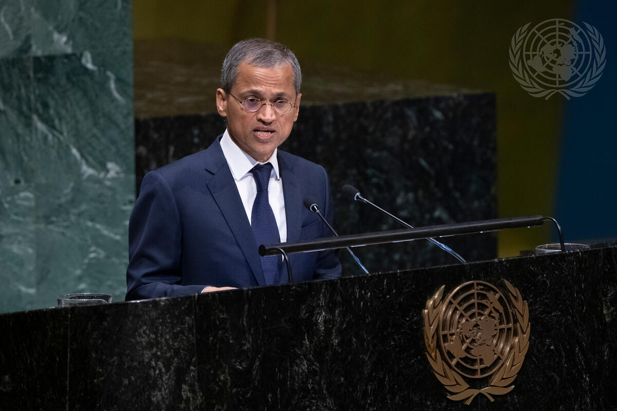 Burhanudeen Gafoor, Permanent Representative of the Republic of Singapore to the UN, introduces a draft resolution to the General Assembly on Oceans and the law of the sea, including sustainable fisheries and management of straddling fish stocks and highly migratory fish stocks. The resolution was later adopted.