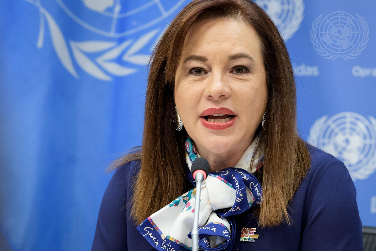 María Fernanda Espinosa Garcés, President of the seventy-third session of the General Assembly, briefs press.