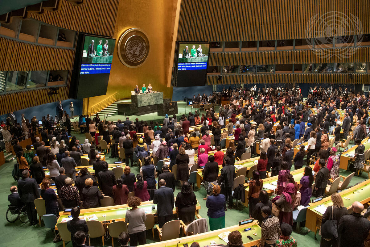 Participants of the opening meeting of the Commission on the Status of Women (CSW) 63rd session observes a moment of silence for those who lost their lives in the crash of Ethiopian Airlines flight ET302 (10 March).