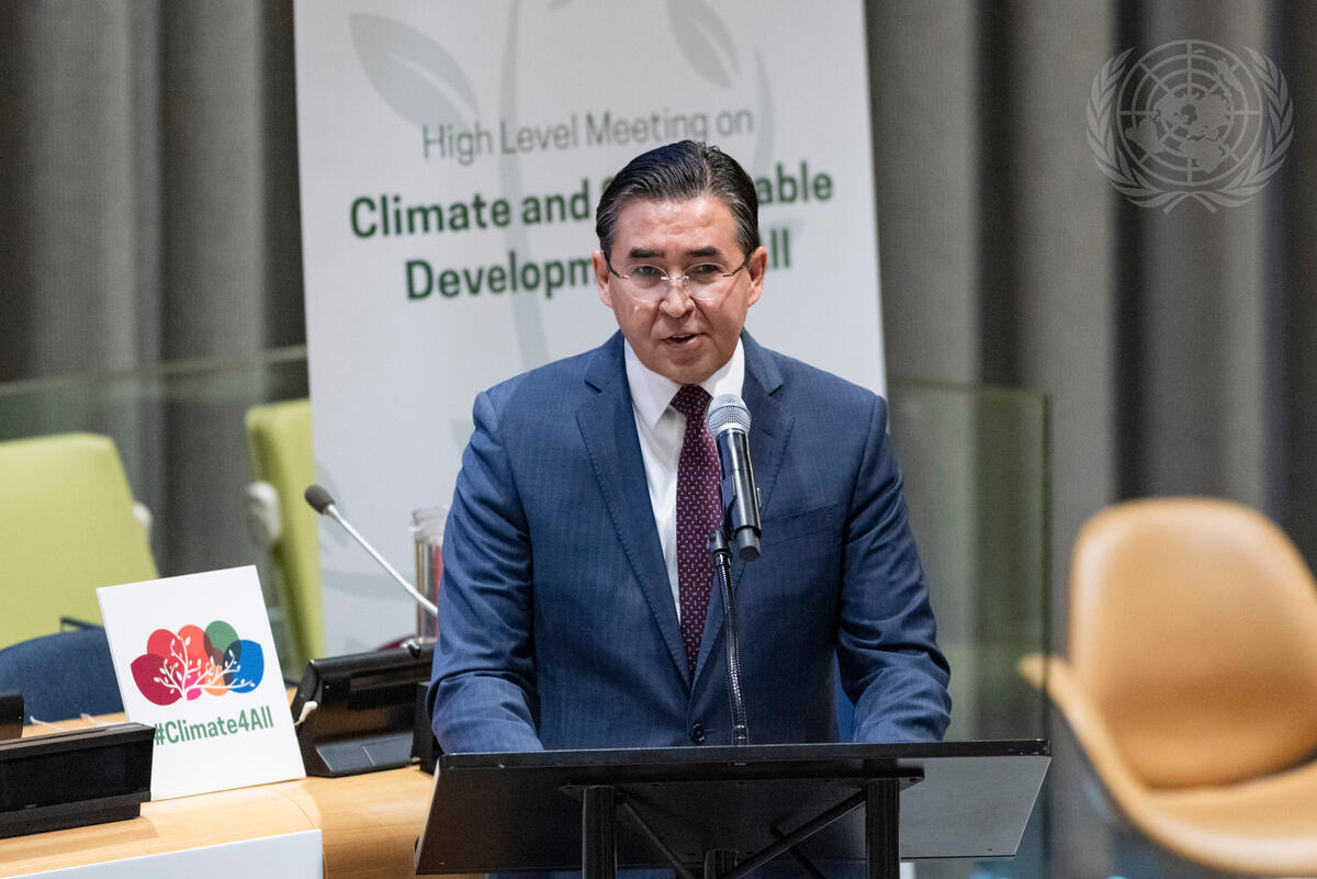 Bakhtiyor Ibragimov, Permanent Representative of the Republic of Uzbekistan to the UN, addresses the high-level meeting on Climate and Sustainable Development for All. The meeting was themed ""Protection of the Global Climate for Present and Future Generations of Humankind in the Context of the Economic, Social and Environmental Dimensions of the 2030 Agenda for Sustainable Development"".