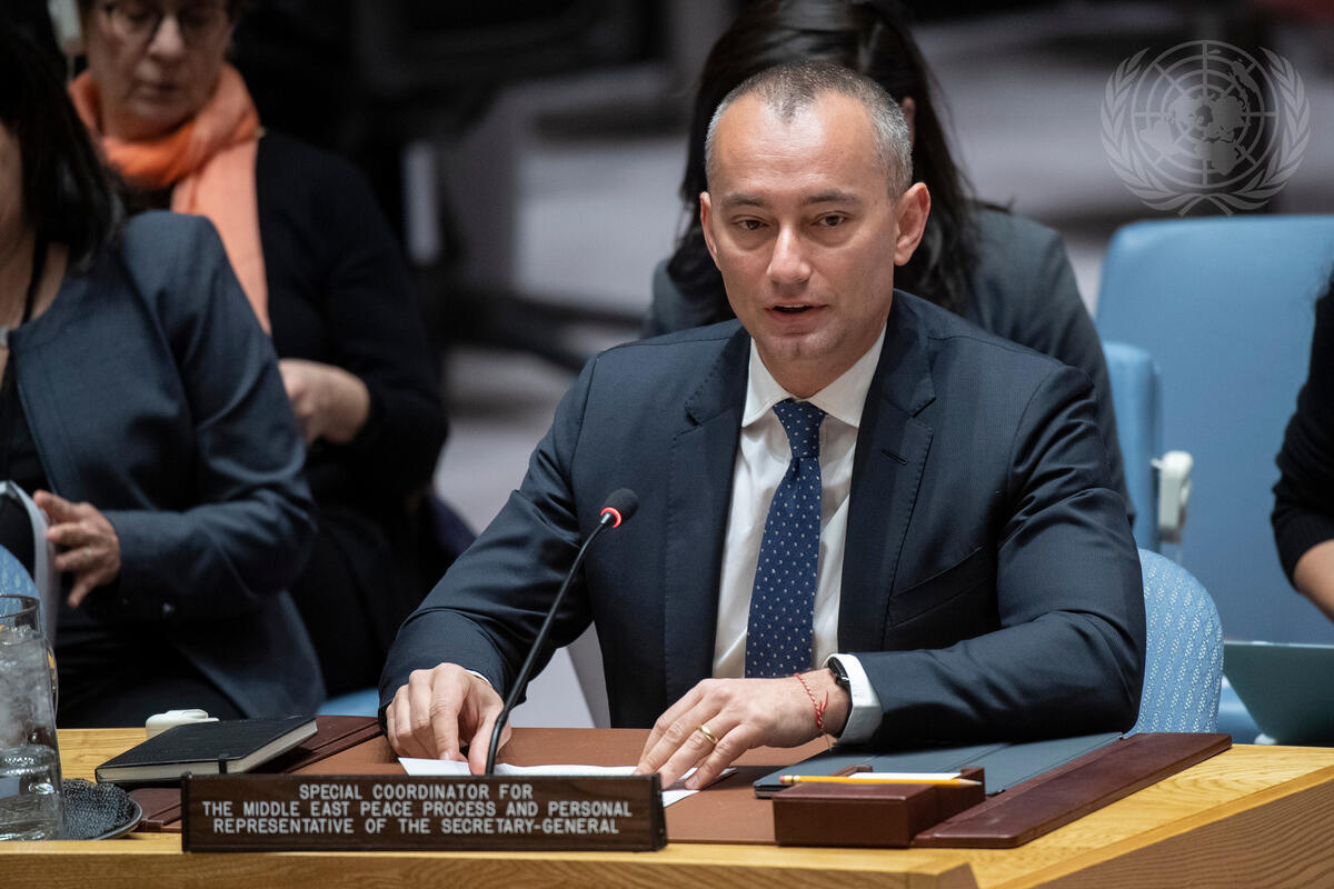 Nickolay Mladenov, UN Special Coordinator for the Middle East Peace Process and Personal Representative of the Secretary-General to the Palestine Liberation Organization and the Palestinian Authority, briefs the Security Council on the situation in the Middle East, including the Palestinian question.