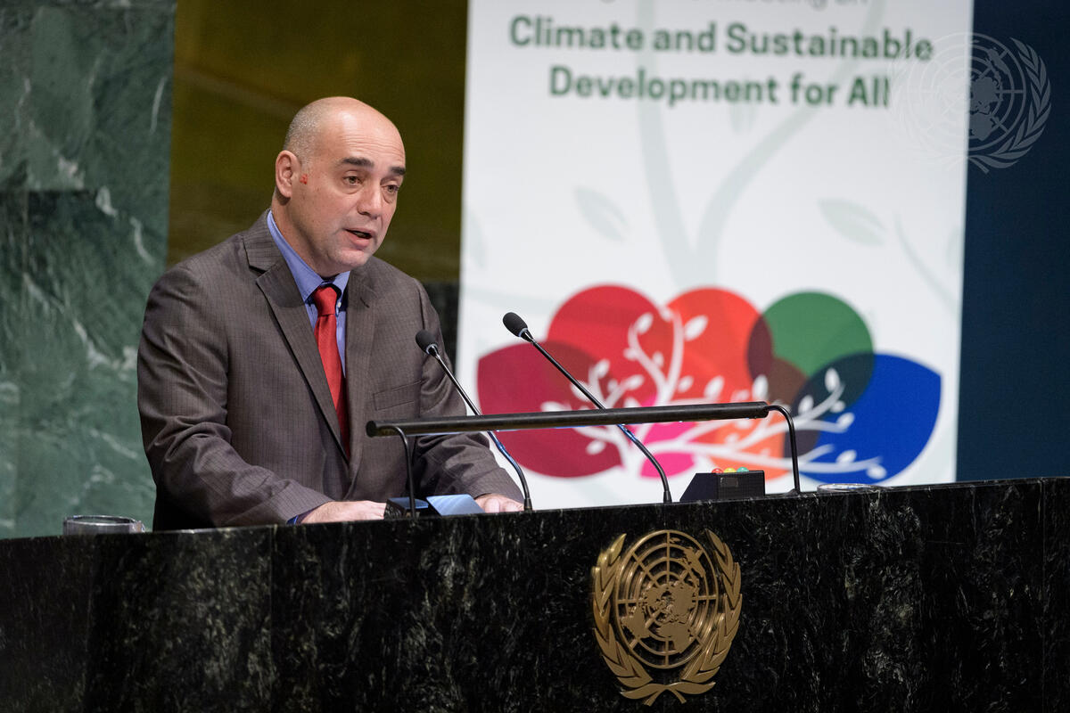 Omar Figueroa, Minister of Agriculture, Fisheries, Forestry, the Environment, Sustainable Development and Immigration of Belize, addresses the high-level meeting on Climate and Sustainable Development for All on behalf of the Alliance of Small Island States. The meeting was themed ""Protection of the Global Climate for Present and Future Generations of Humankind in the Context of the Economic, Social and Environmental Dimensions of the 2030 Agenda for Sustainable Development"".