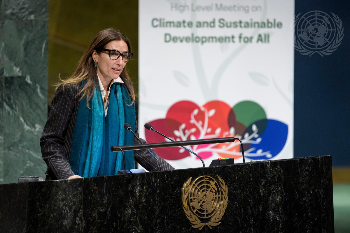 Carolina Schmidt, Minister of Environment of Chile, addresses the high-level meeting on Climate and Sustainable Development for All. The meeting was themed ""Protection of the Global Climate for Present and Future Generations of Humankind in the Context of the Economic, Social and Environmental Dimensions of the 2030 Agenda for Sustainable Development"".