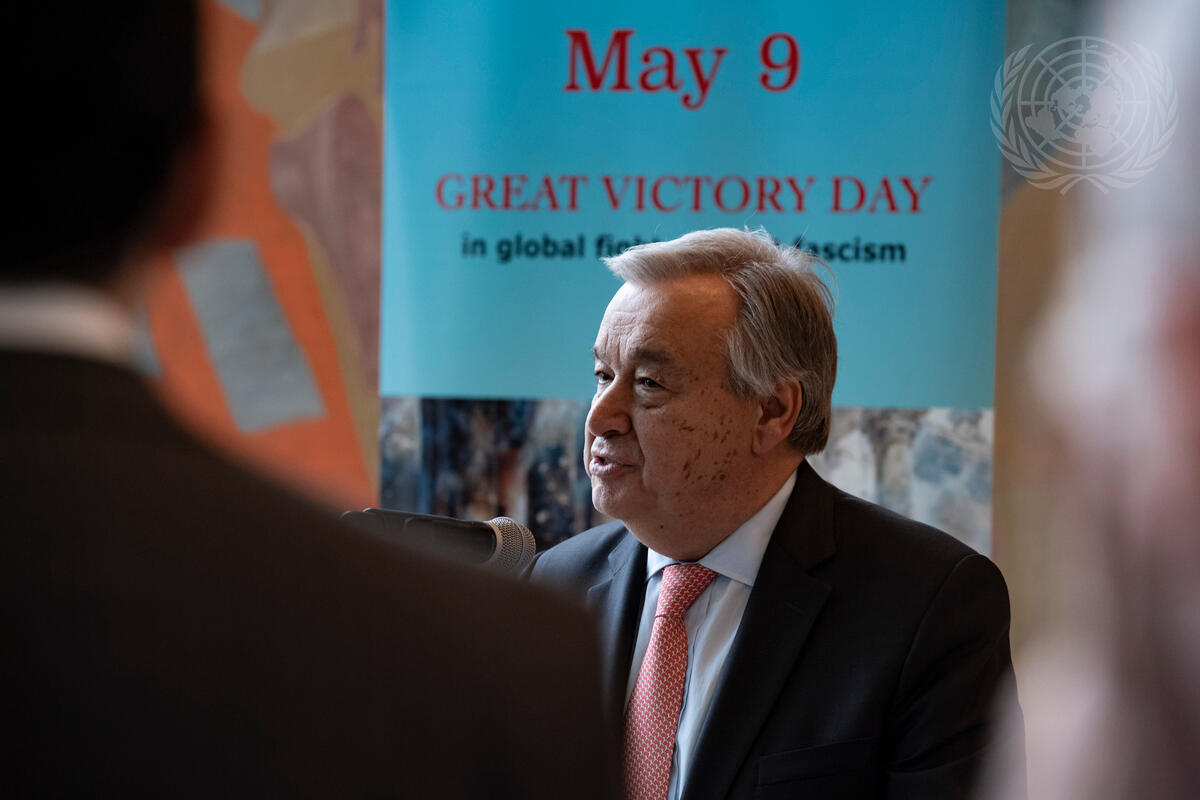 Secretary-General António Guterres speaks at the opening of the photo exhibition "Women at War: Courageous and Heroic".
