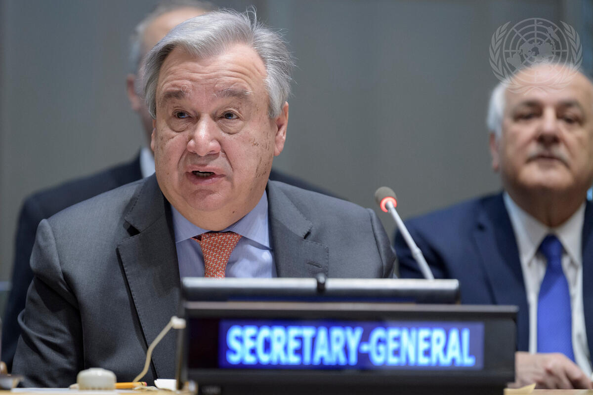 Secretary-General António Guterres makes remarks during the handover ceremony of the Chairmanship of the Group of 77 from the Arab Republic of Egypt to the State of Palestine.