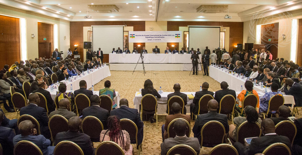 A wide view of the second meeting of the International Support Group (ISG) to the Central African Republic. Participants includes Faustin-Archange Touadéra, President of the Central African Republic; Jean-Pierre Lacroix, Under-Secretary-General for the Department of Peace Operations; Smaïl Chergui, Commissioner for Peace and Security of the African Union; Koen Vervaeke, Managing Director for Africa of the European External Action Service; as well as representatives of the Economic Community of Central African States.