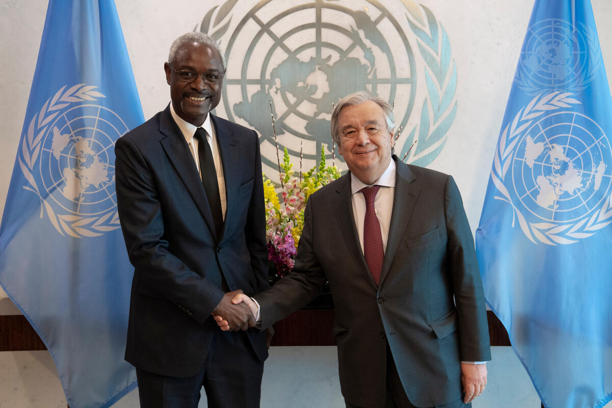 Secretary-General António Guterres (right) meets with Ibrahim Thiaw, Executive Secretary of the United Nations Convention to Combat Desertification.