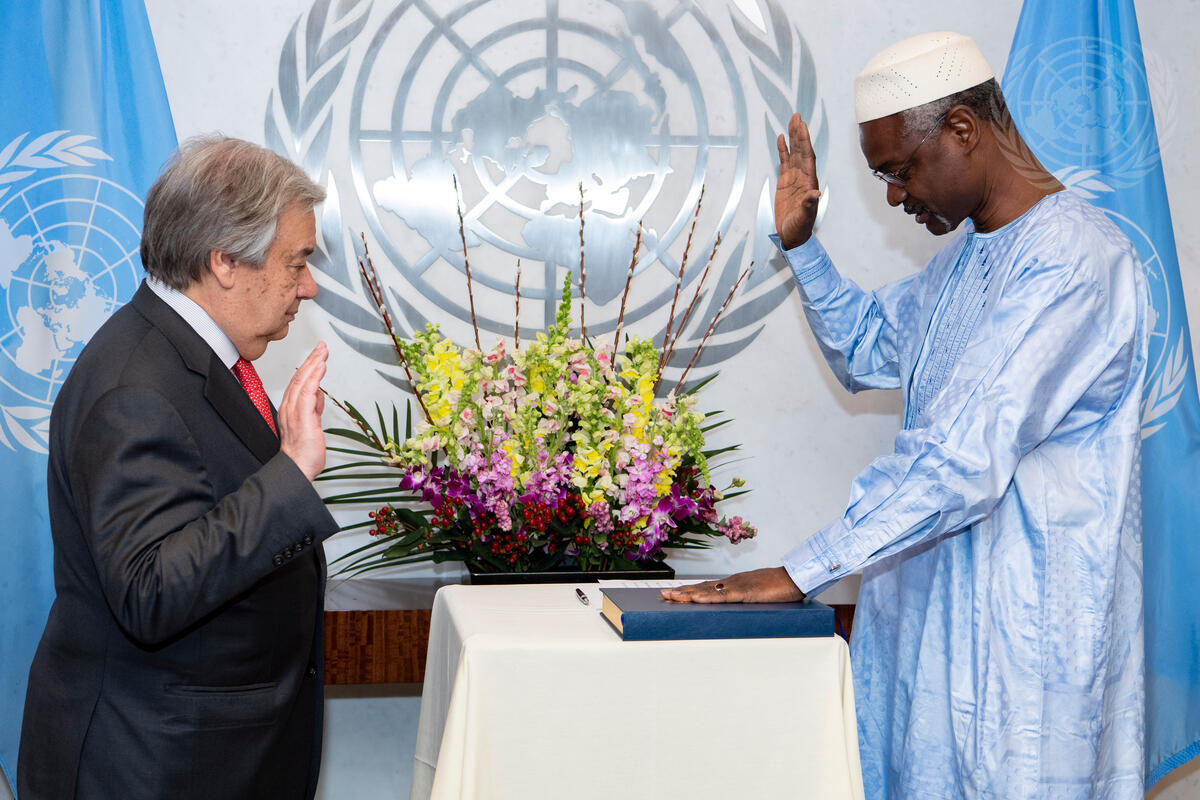 Secretary-General António Guterres (left) swears in Ibrahim Thiaw, Executive Secretary of the United Nations Convention to Combat Desertification.