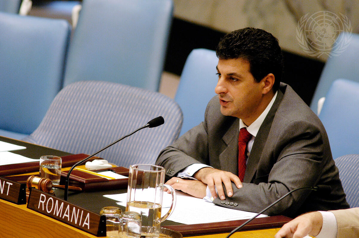 Ambassador Mihnea Ioan Motoc (Romania), President of the Security Council, addressing members of the Council during a meeting on Afghanistan.