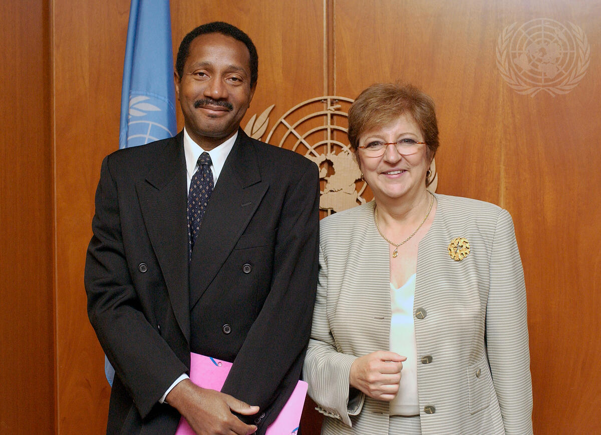 Deputy-Secretary-General Louise Fréchette (right) meets with Roland Pierre, Minister of Planning and Environment of Haiti.