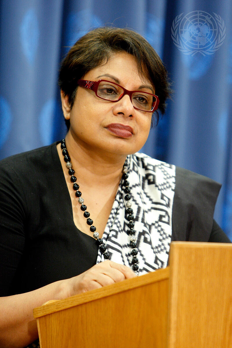 Radhika Coomaraswamy, Special Representative of the Secretary-General for Children and Armed Conflict, briefs journalists at UN Headquarters in New York.