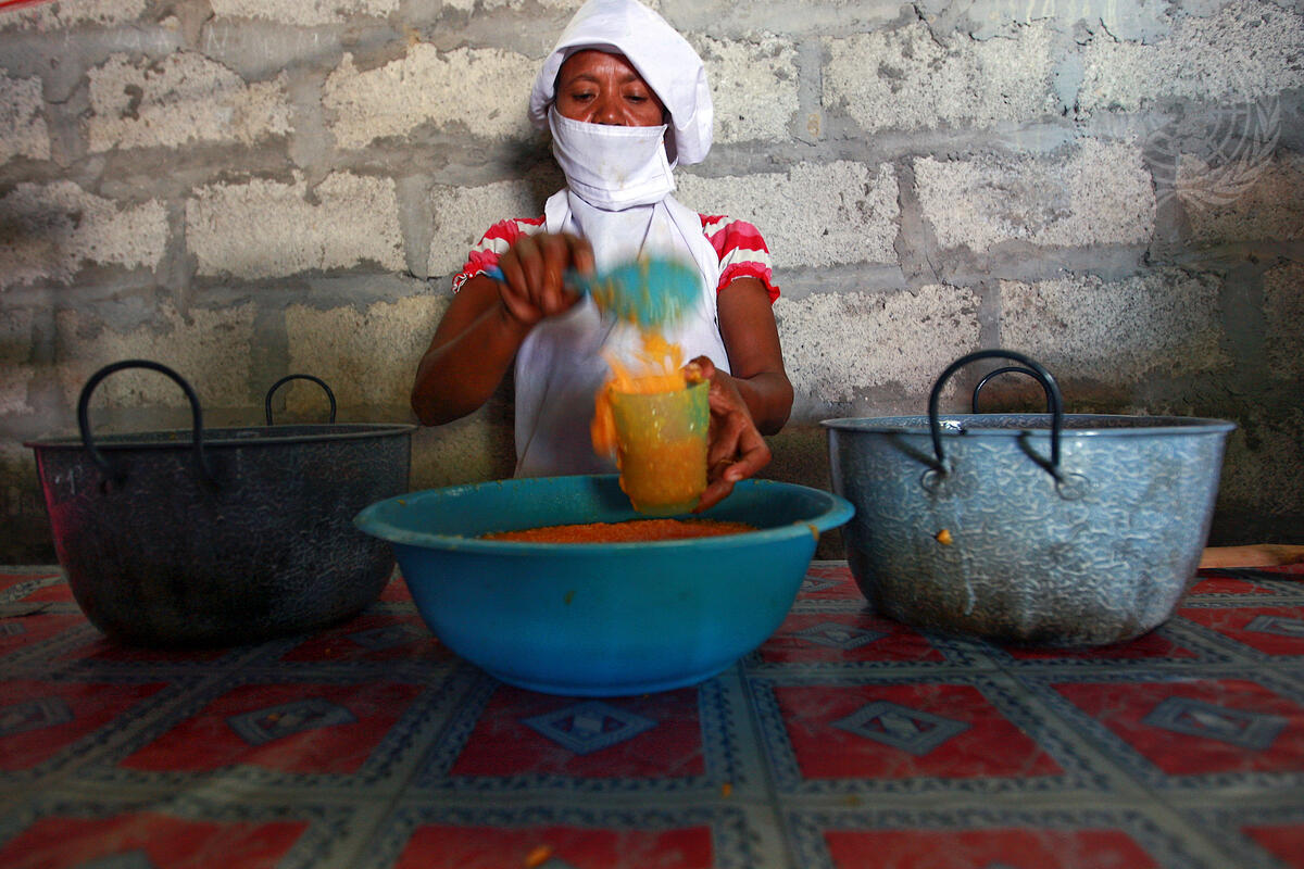 A woman makes marmalade in Timor-Leste's north coastal district of Baucau. Along with other Timorese women, she is the beneficiary of local NGO Centro de Desenvolvimento Comunitario (CDC), which sponsors community-based activities. The CDC has collaborated with the UN Development Programme in Timor-Leste.