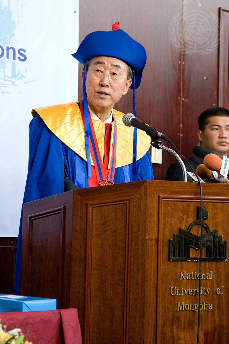 Secretary-General Ban Ki-moon receives an Honorary Doctorate degree conferred by the National University of Mongolia.
