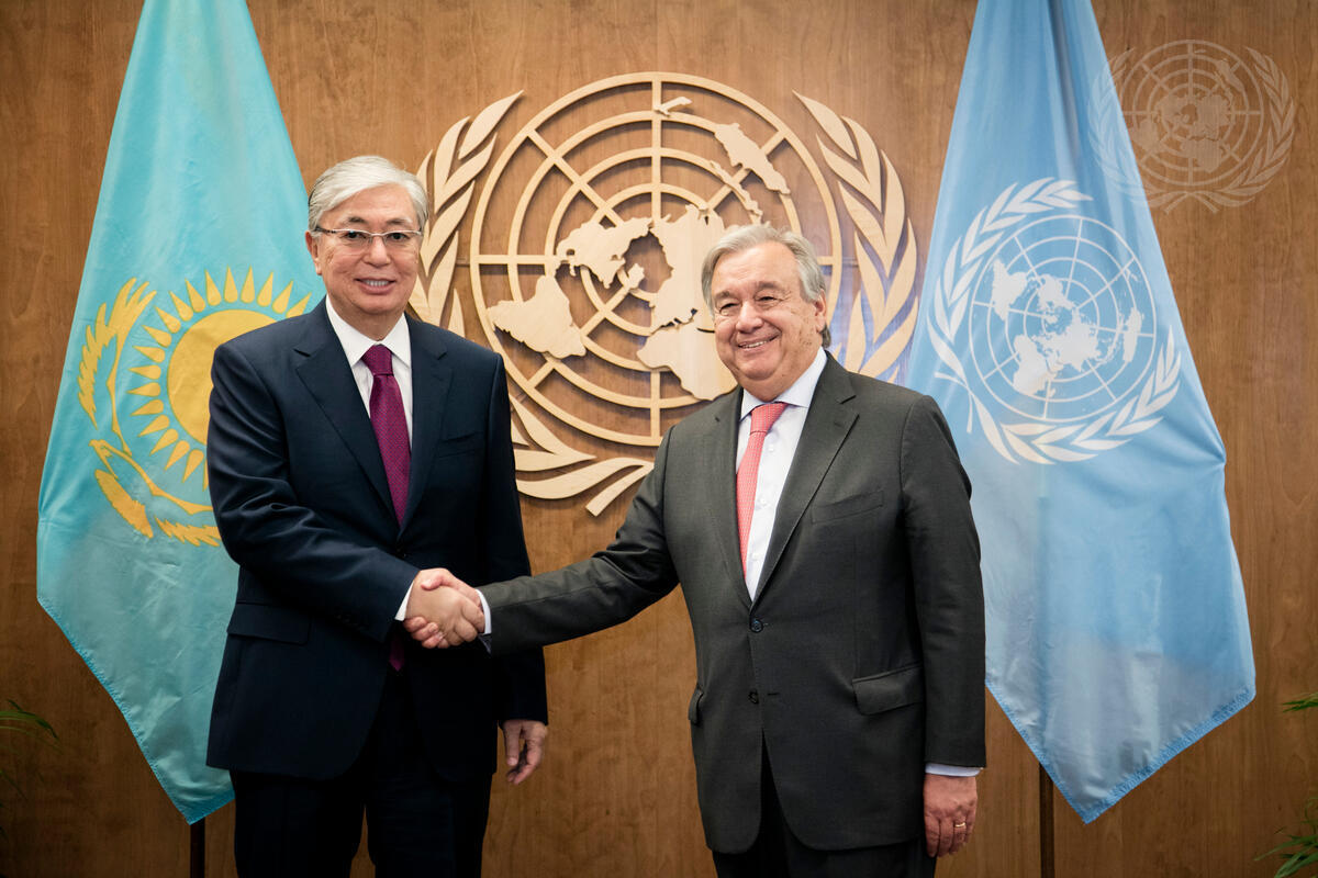 Secretary-General António Guterres (right) meets with Kassym-Jomart Tokayev, President of the Republic of Kazakhstan.