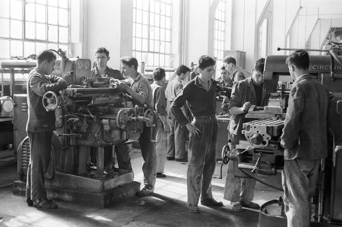 This picture shows students at work in the school’s machine shop.