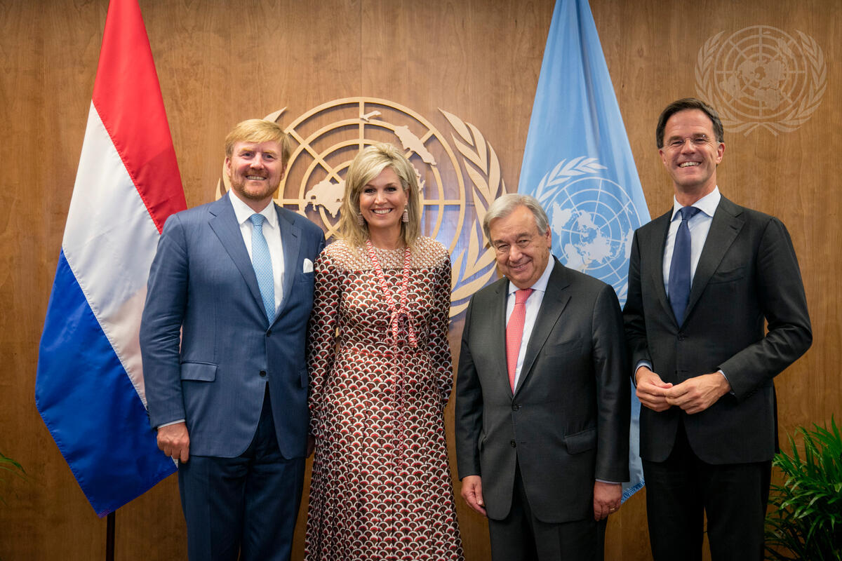 Secretary-General António Guterres (second from right) meets with King Willem-Alexander of the Netherlands (left), Queen Máxima and Mark Rutte, Prime Minister of the Netherlands.
