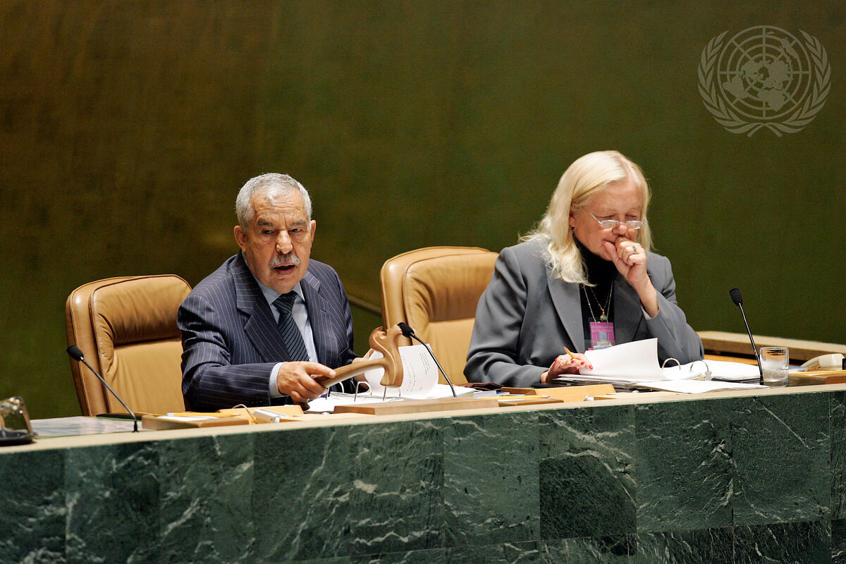 Ali Abdussalam Treki (left), President of the sixty-fourth session of the General Assembly, oversees the second plenary meeting which finalizes the work programme for the Assembly's sixty-fourth session.