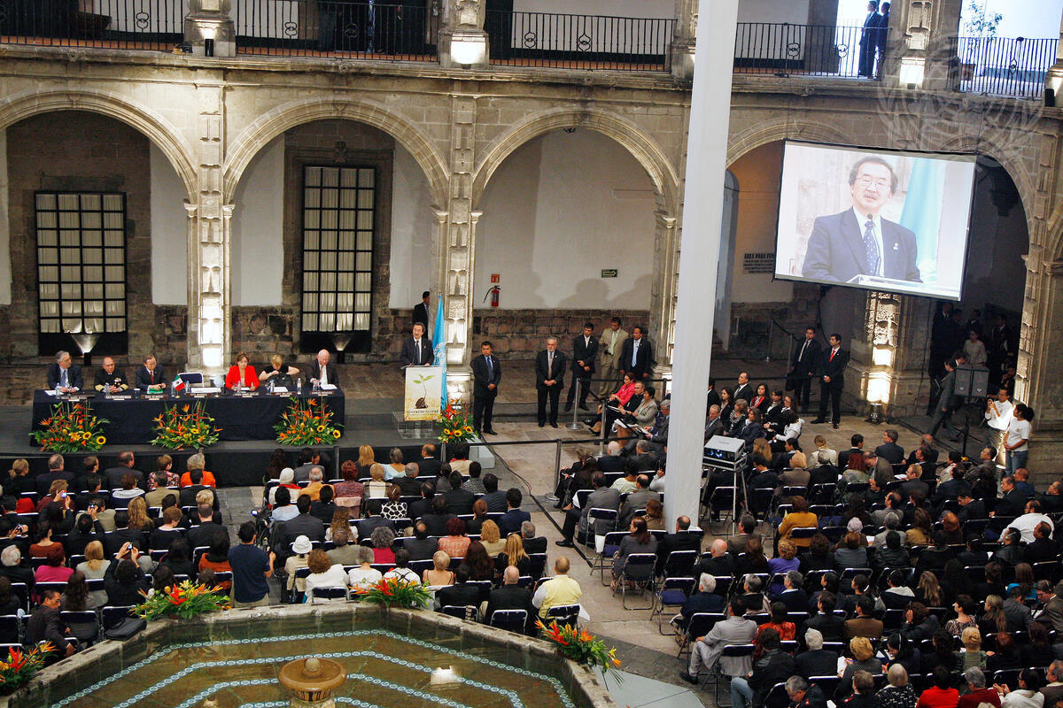 Wide view of the conference hall as Kiyotaka Akasaka, UN Under-Secretary General for Communications and Public Information, addresses the 62nd annual UN Department of Public Information (DPI) and Non-governmental Organizations (NGOs) Conference. The meeting this year focuses on disarmament and takes place in Mexico City on 9-11 September.