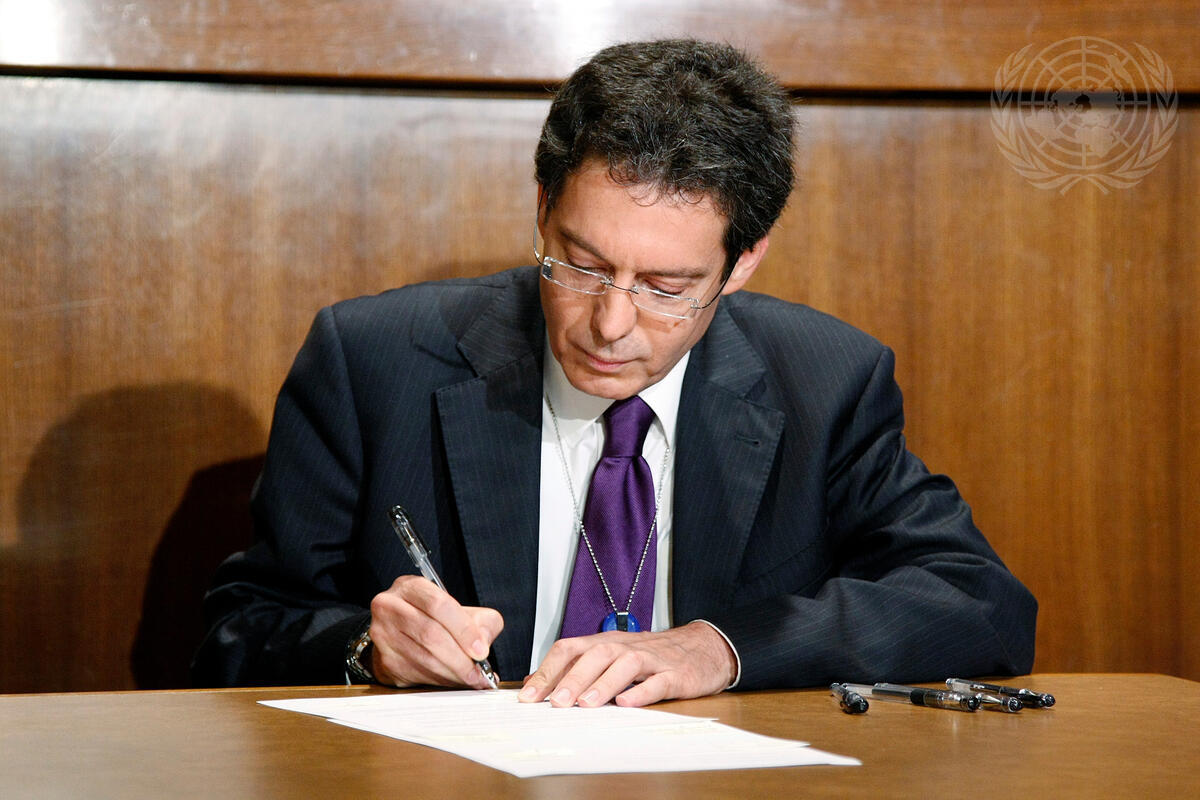 Minas Hadjmichael, Permanent Representative of the Republic of Cyprus to the United Nations, signs the ""New York Declaration"". The Declaration will commit countries to promulgating internationally recognized best management practices for the self-protection of vessels on its register, in order to help avoid, deter, or delay pirate attacks off the coast of Somalia.