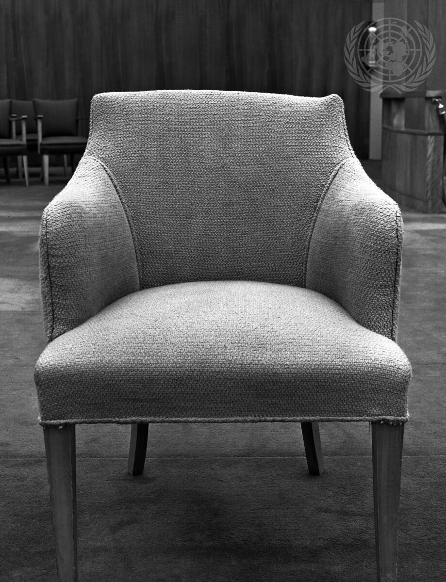 United Nations Security Council Chamber Chief Delegate's chair. [No exact date]