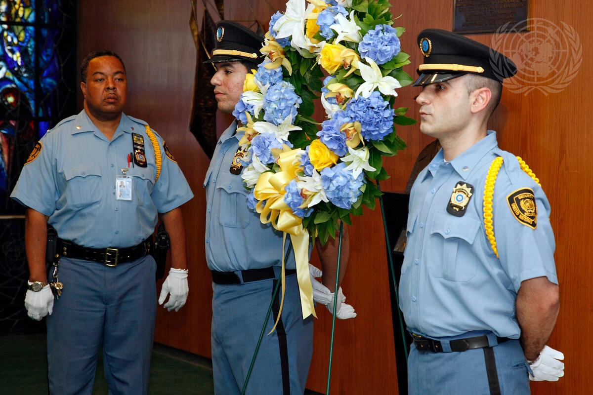 A wreath-laying ceremony was held at United Nations Headquarters to commemorate the sixth anniversary of the 2003 bombing of the United Nations office in Baghdad, which claimed the lives of 22 United Nations staff members.