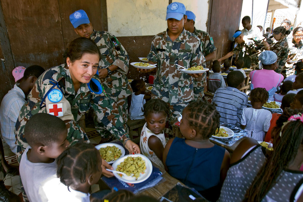 Members of the Nepalese contingent of the United Nations Stabilization Mission in Haiti (MINUSTAH) participate in CIMIC (Civil-Military Cooperation) activities in an orphanage located in Kenscoff.