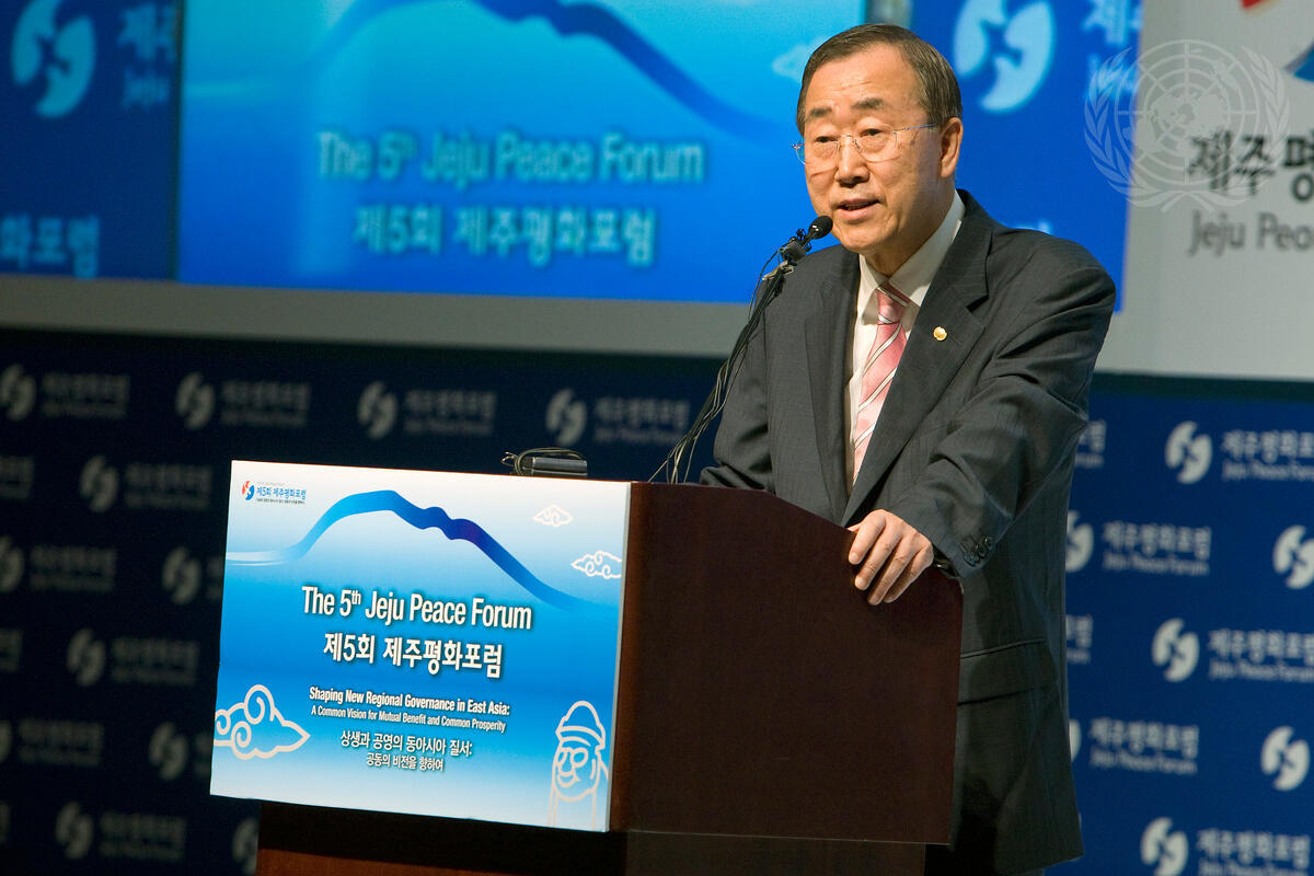 Secretary-General Ban Ki-moon delivers a keynote address to the 5th Jeju Peace Forum in the Republic of Korea.